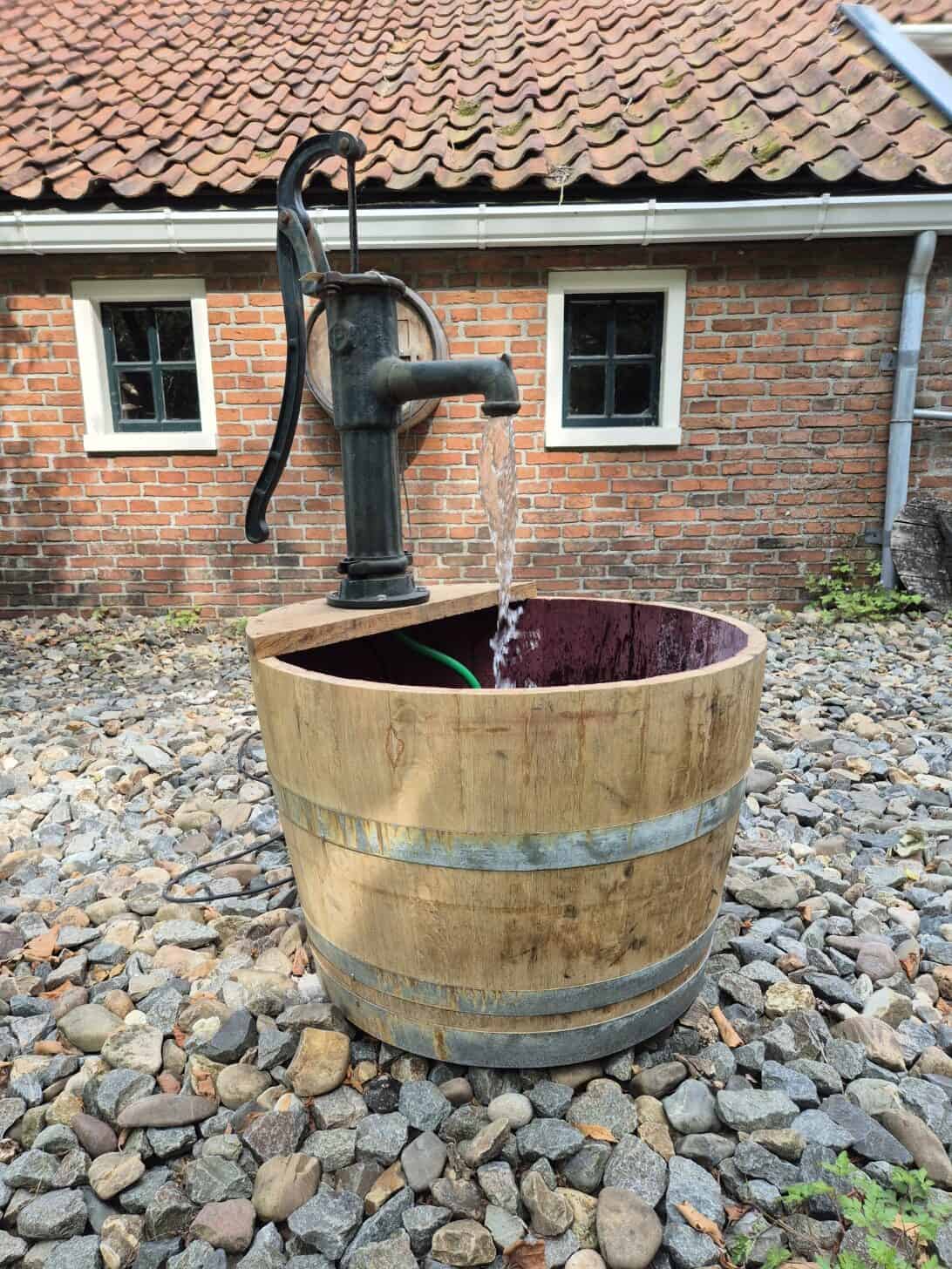 Door een vat door te zagen ontstaan er plantenbakken. Deze kunnen van grootte varieren, waarbij we zoveel mogelijk rekening proberen te houden met de ijzeren ringen rondom het vat.